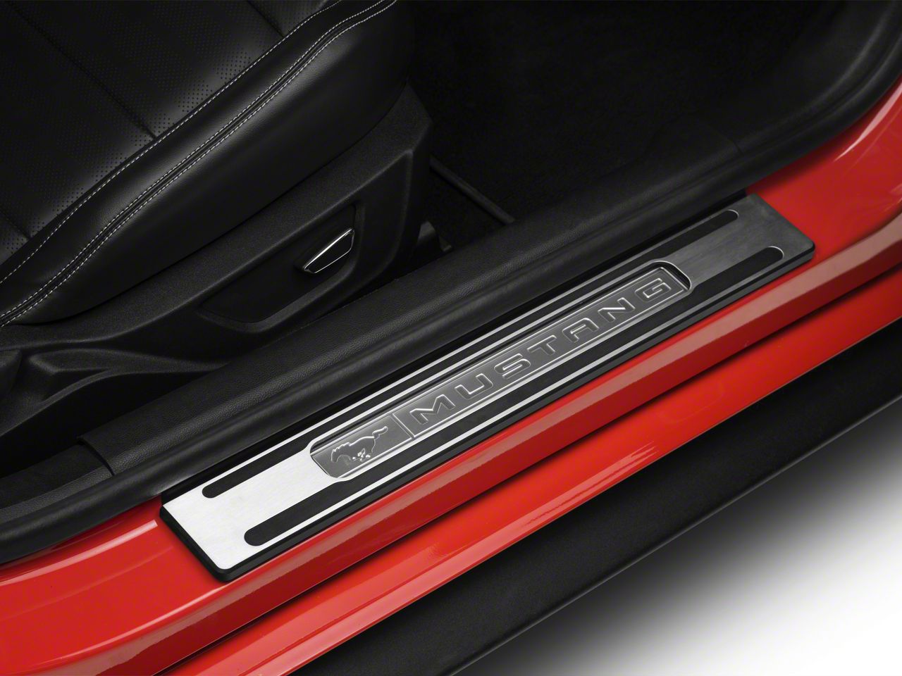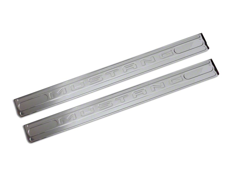 A lighted door sill not only brings illumination but eye popping style to the interior of your ford mustang v6 as well. Pick up some mustang door sill plates and make sure your pony has that extra little bit of show winning flair. Scott drake door sill plate screw set 1965 1968. Enter a new vehicle 2pc 05 14 mustang gt logo door sill show quality chrome finish sills.