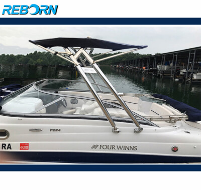 Reborn wakeboard tower bimini is designed to fit most popular wakeboard towers on market it could be installed above the tower for boat beam around 90in for boat beam above 90in this bimini could be either installed above or installed under your tower so no need to measure your tower before you place order.